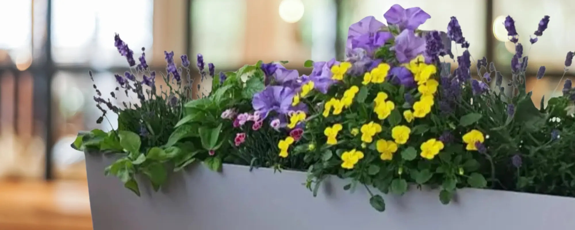 Jasna, wiosenna kompozycja z 6–8 kwiatami, która od razu wnosi na balkon więcej koloru i świeżości. Wybierz rozmiar i wykończenie donicy, a my posadzimy zestaw i dostarczymy go pod Twoje drzwi.